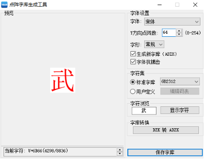 勾選,將以ADZK格式保存字庫數據,生成的字庫文件的后綴為ADZK。目前僅SDWb系列支持該格式字庫。否則生成DZK格式字庫。